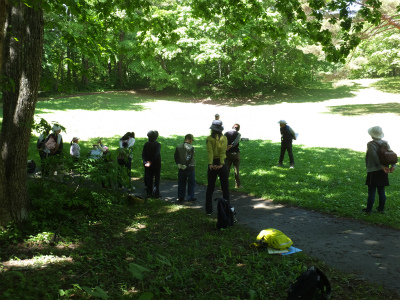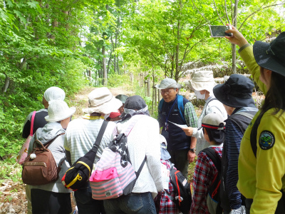 参加者は12名。親子での参加も多く、晴れ渡る空の下散策やネイチャーゲームを楽しみました。