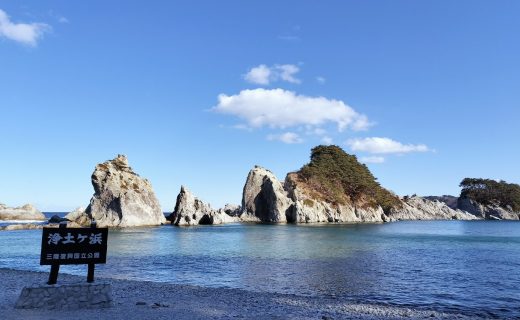 浄土ヶ浜の看板が新しく設置されました!ということで、早速!浄土ヶ浜へ!! 天気が良い為、たくさんの人で賑やかな浄土ヶ浜です(^^) 数日前の雨のせいか海は少し濁り気味ですが、、それでもきれいなエターナルグリーン♪ 天気の良い日には浄土ヶ浜まで足を運んでみてはいかがですか? ※本日(4/1)より一般車両の交通規制が始まっております。 ※高波時海岸歩道歩行注意!浄土ヶ浜ビジターセンターから浄土ヶ浜に向かって2つ目のトンネルの出口付近が濡れているときは、波を被る危険がありますので注意して歩行願います。