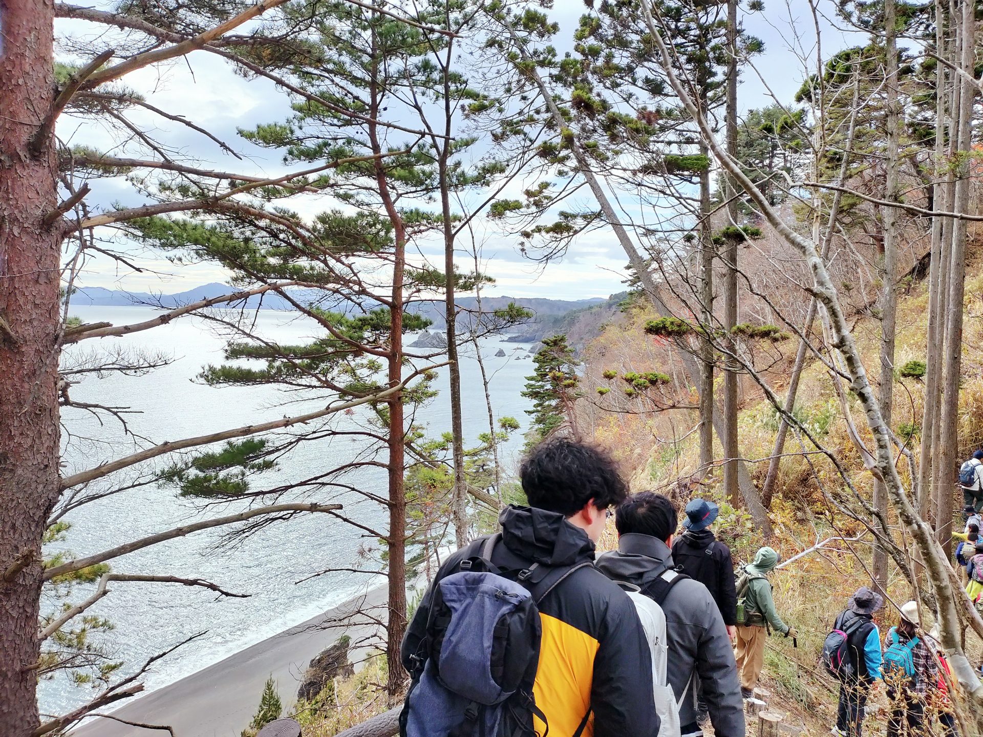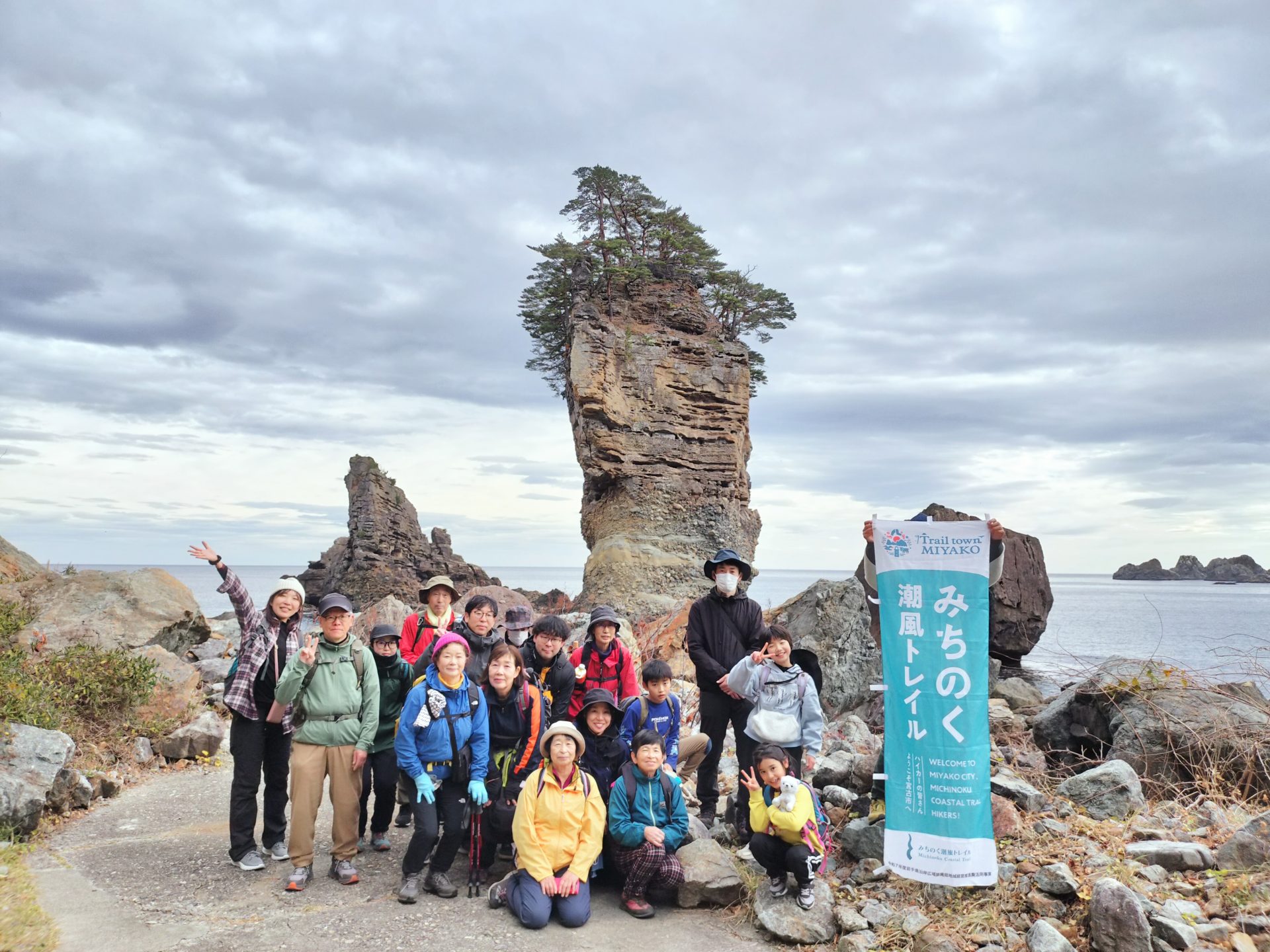 11月23日「みちのく潮風トレイルin宮古~田老の海と歴史を感じて~」を開催しました。 イベントでは、田老の海岸線を歩きながら「三王岩」などの自然風景を楽しみつつ「津波遺構たろう観光ホテル」や「宮古市災害伝承資料館」に立寄り、津波による災害の歴史についても一緒に見学してもらいました。 途中、道の駅たろうで開催されていた「鮭・あわびまつり」にて昼食休憩をとり田老の味覚を楽しんでいただきました。ご参加いただいた皆さんありがとうございました。 本イベントでは、大塚製薬株式会社さんより、参加者の皆さんへ「ボディメンテ」などのドリンクを提供をいただきました。ありがとうございました。