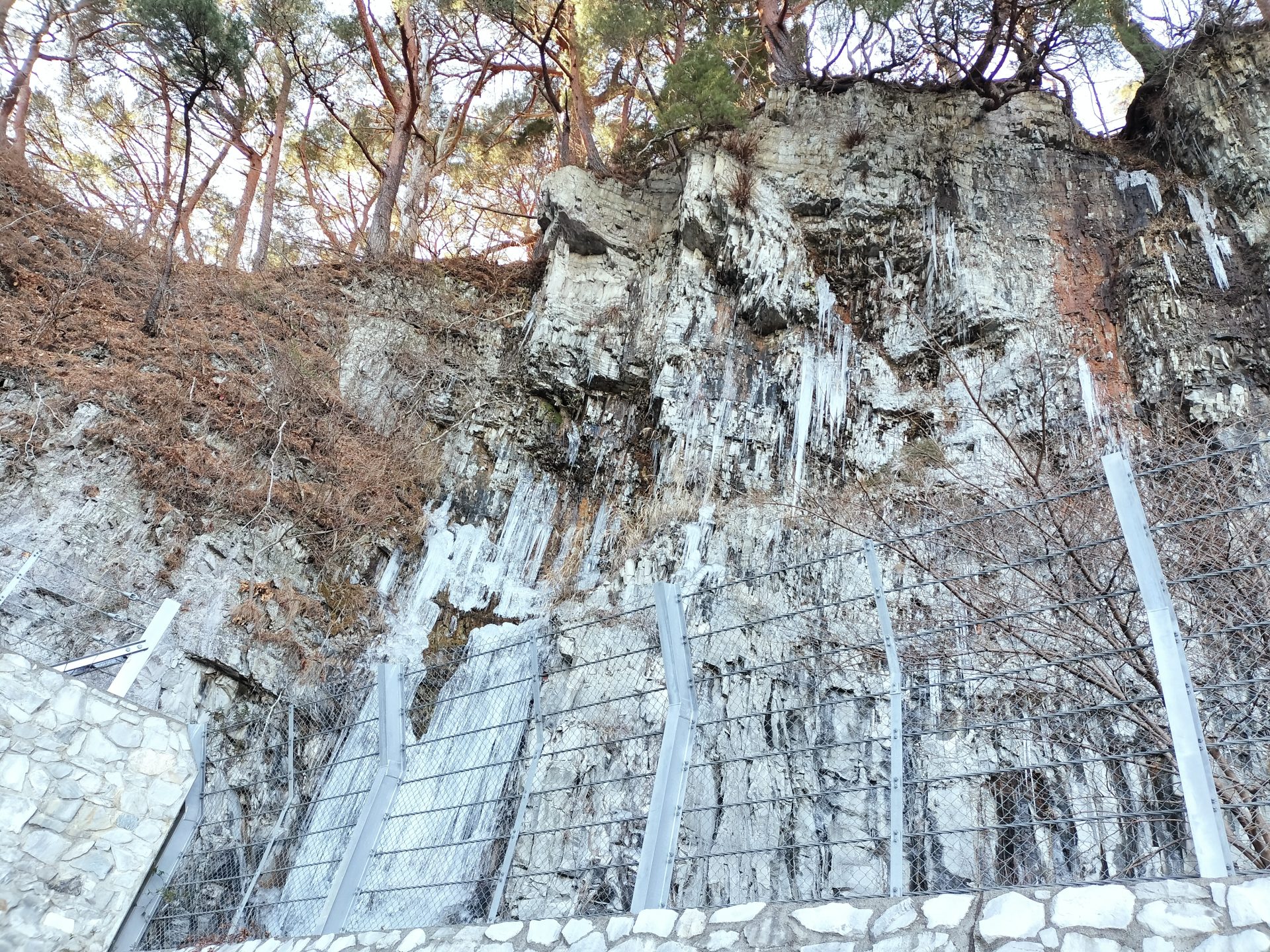 ↑ 特に寒い日が続いた日は、山手側にも目を向けてみてください。立派な「つらら」を見ることができます!