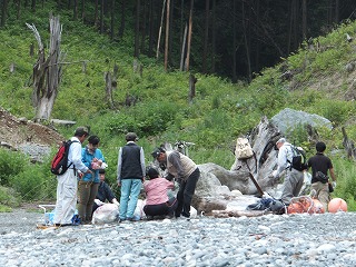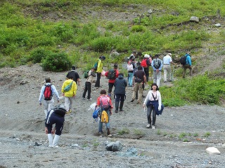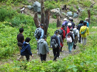 自然道入口でビジターセンター組と樫内集会所組合流です。