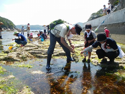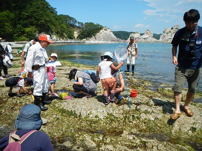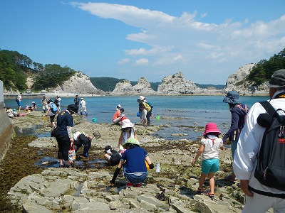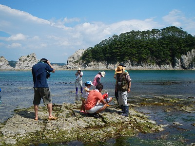7月27日日曜日に、浄土ヶ浜ビジターセンターイベント「磯の観察会in浄土ヶ浜」を、岩手県立水産科学館と共催で行いました!講師は、海の生物にとても詳しい、佐々木精一先生をお迎えしました。参加者は26名と、観察会のフィールドとなった砥石浜の磯場はとてもにぎわいました。