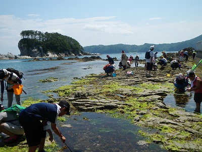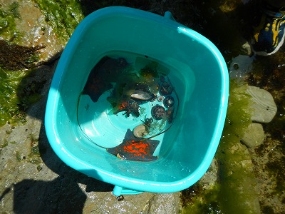 磯の観察会は、宮古漁業協同組合さんに許可を得て実施しました。磯や海には、漁業協同組合により漁業権が設置され、一般の人たちが採取・捕獲してはいけない生き物がいます。また、浄土ヶ浜は国立公園です。生き物を持ち帰ってはいけません。生き物にも思いやりを持った行動を心がけ、観察した後は、生き物をものと場所に帰してあげましょう。