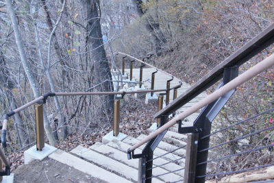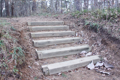 急で長い階段は、階段をきれいにして、手すりが付きました!これで怖い思いをせずに済みますね。また、有事の際にも活躍しそうです。