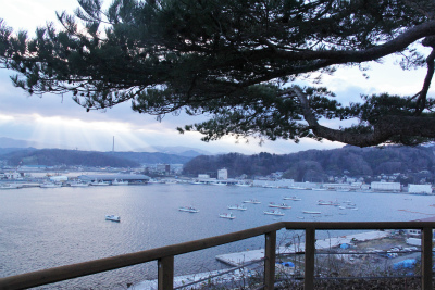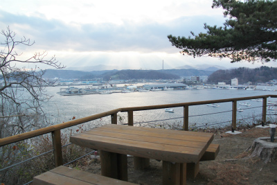 展望所の上からは、宮古湾~外洋を望むことができます♪北には日出島や姉ヶ崎、東には閉伊崎に重茂半島月山。漁に出ている漁師さんの姿や、海鳥が空を飛んでいるのも見えました。