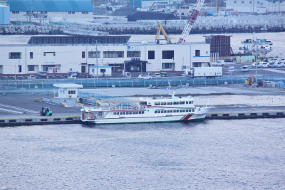 出崎埠頭の景色を見て、うっとりしていたら、見慣れた船を見つけました(^^)いつも、浄土ヶ浜で活躍している、遊覧船でした!整備でしょうか?!(^^)