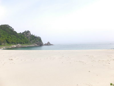 写真では分かりにくいですが、砂浜の色が手前は薄紫に見え、波打ち際は白というコントラストが綺麗でした。