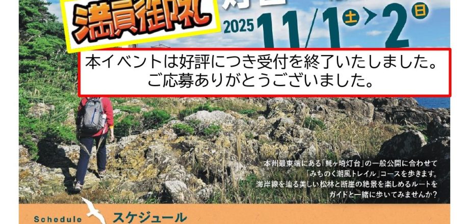 みちのく潮風トレイル 魹ヶ崎トレッキング&灯台一般公開は定員に達した為、募集を終了いたします。たくさんのご応募ありがとうございました。